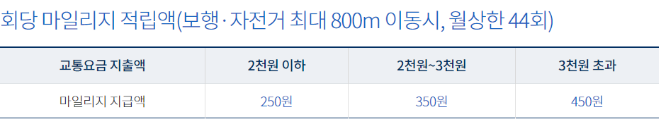마일리지는 월 15회 이상 대중교통 이용시에만 지급하고