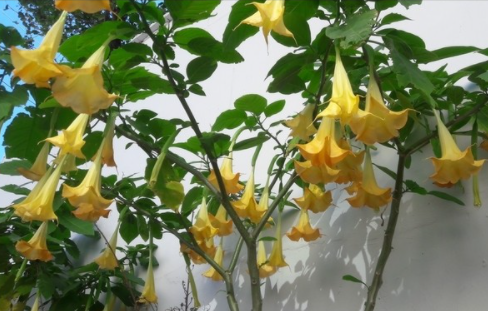 천사의 나팔의 줄기는 곧게 서서