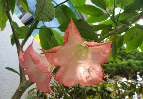 오늘의 식물은 엔젤트럼펫, 즉 천사의 나팔이에요.