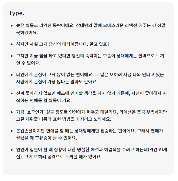 음 저와 맞는 타입은 저 문항들 중에 없지만