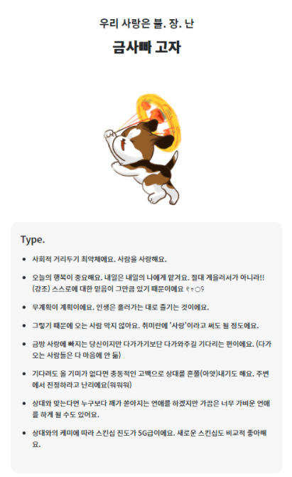 내가 좋아하는 유형으로는 발랄한 고자가 나왔네요 ㅋㅋ