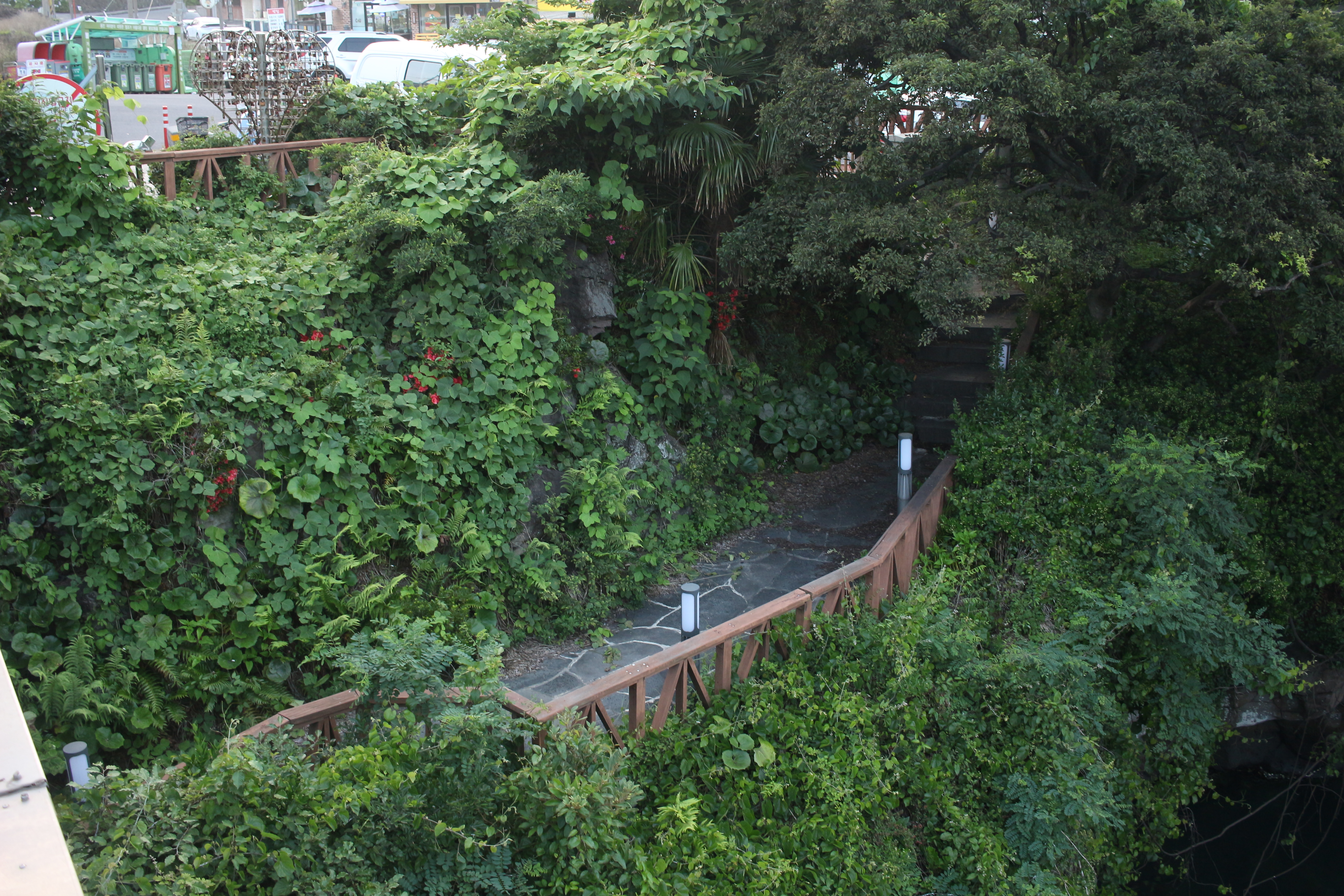 풀이 가득한 주변환경에서 계단을 타고 아래로 내려가니
