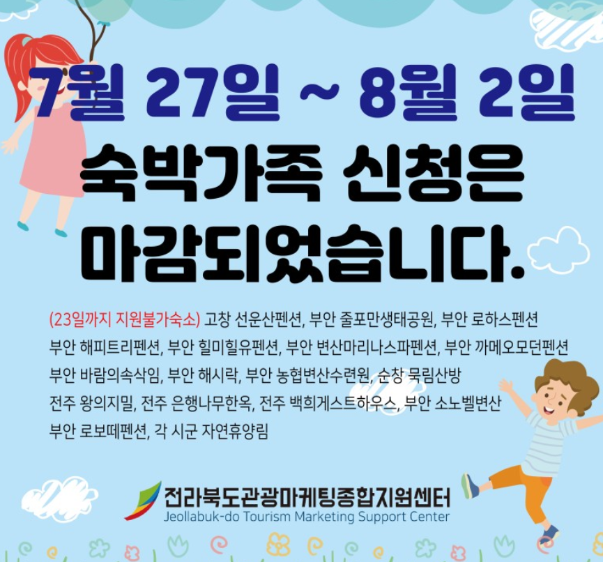 * 전라북도 외 거주 초,중,고 청소년 가족동반 여행 지원사업.