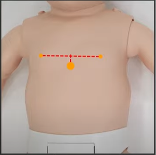 흉골 부분에 두개의 손가락으로 5회 누른다)