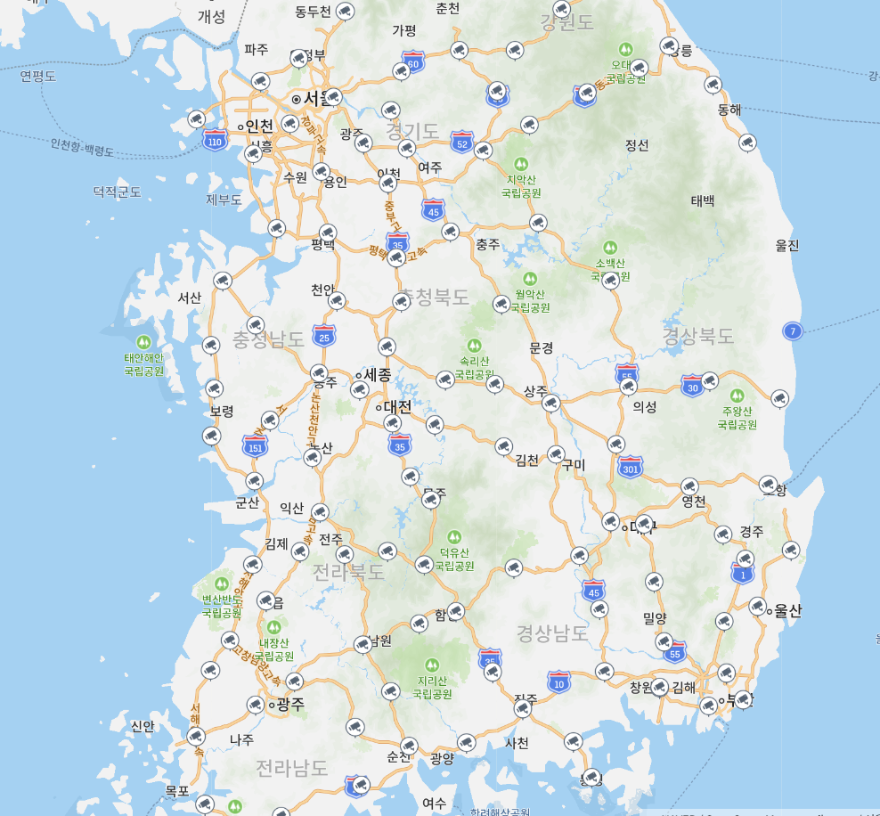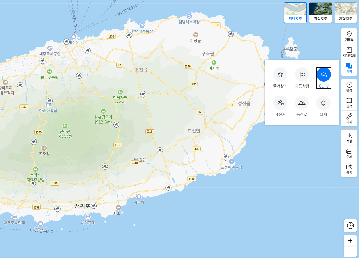 CCTV에 체크를 하면 이제 전국의 CCTV