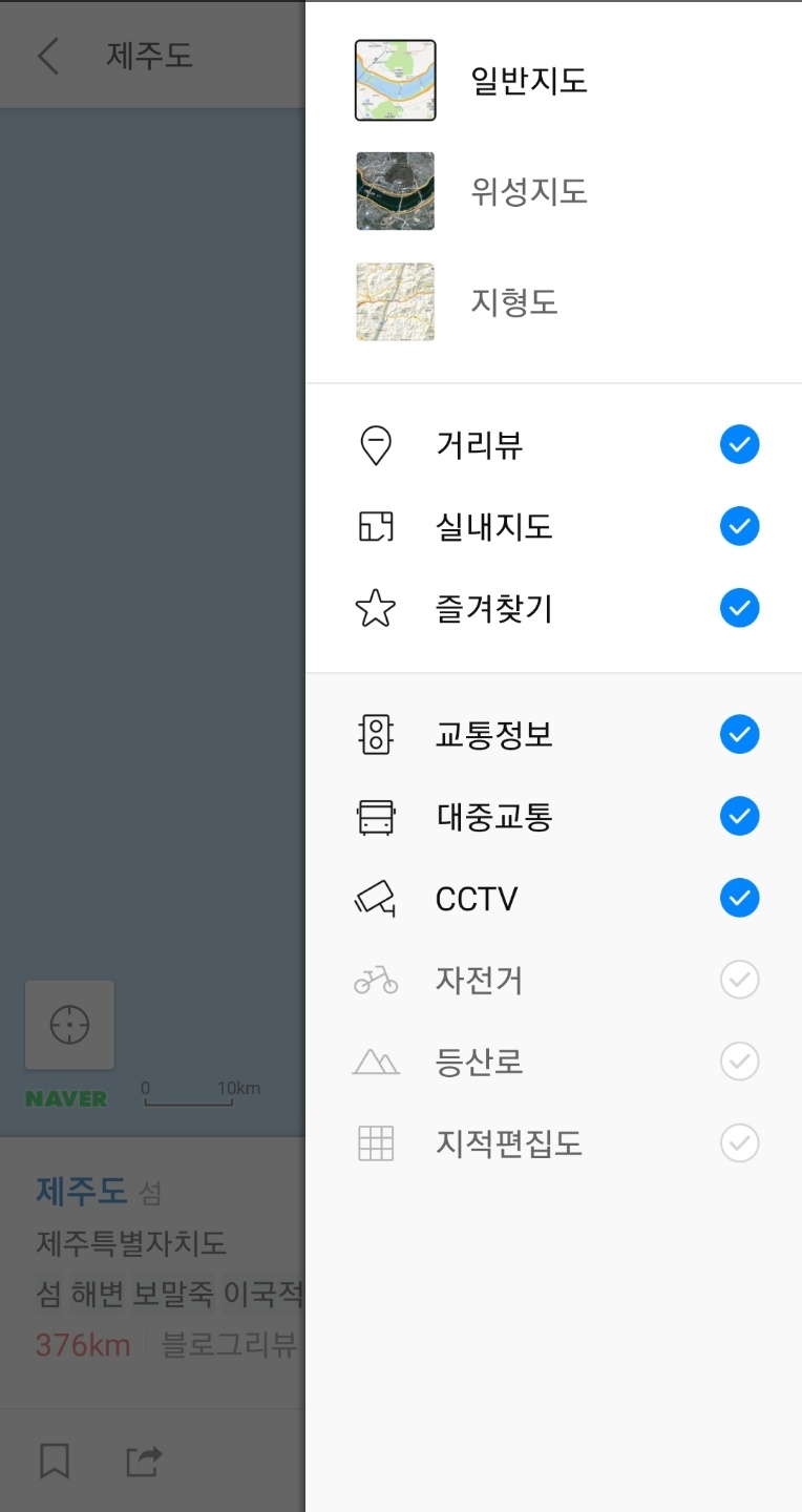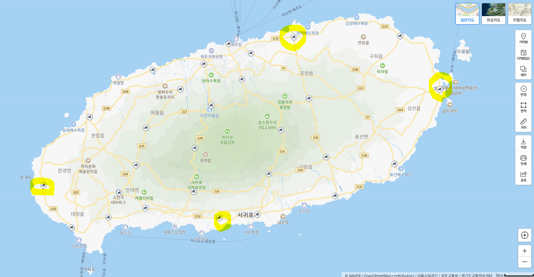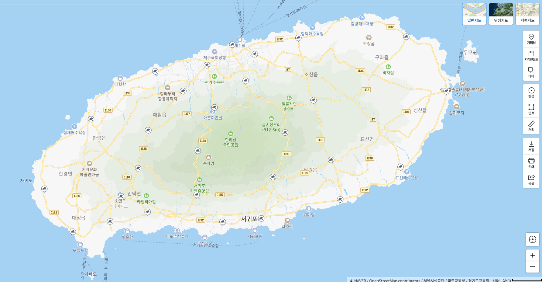 네이버 지도에서 제주도를 검색하면 나오는 상황입니다.