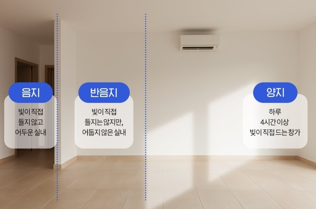 양지, 반음지, 음지로 나눠